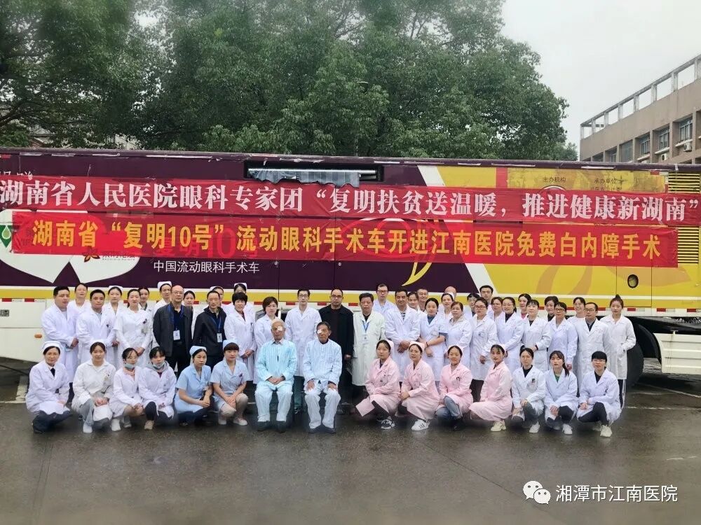 9月24日,湖南省“复明10号”中国流动眼科手术车湘潭站项目在江南医院启动,来自省城的眼科专家团队为150余名白内障患者提供免费手术治疗,帮助他们重获光明。 杨嗲嗲第一个登上手术车 今年已85岁高龄的杨嗲嗲是本地人,近年来左眼视力不断下降,视物似蒙上了一层磨纱纸,生活质量明显下降,后被确诊为老年性白内障,一直犹豫着未治疗。在得知“复明10号”将到江南医院开展免费手术后,他立即参加了筛查并报名手术。今天,他第一个登上手术车,术前准备完毕后,省人民医院眼科专家李俊杰仅10分钟即顺利为老人进行了左眼白内障摘除+人工晶体植入术。 手术成功后,杨嗲嗲被医护人员护送下车。 复明10号接待站医护工作有序进行. 据悉,从2005年开展的“复明10号”项目是中国残联与亚洲防盲基金会合作的复明扶贫项目。2016年,项目捐赠一台新“复明10号”流动眼科手术车给湖南,由湖南省卫健委和湖南省防盲办负责管理,湖南省人民医院负责运行。该手术车集检查、治疗、诊断于一体,相当于一所流动眼科微医院。新“复明10号”自2016年起,开进湖南14个市州的40家县级医院,为14268名贫困白内障患者免费实施复明手术,手术成功率100%,改变了这些患者及家庭的未来,成为不“熄火”的公益车。 在省、市各级政府高度重视下,在湘潭市与雨湖区两级卫健、医保、民政等管理部门的大力支持下,该项目落地江南医院。我院严格按照上级的要求精心组织该项目的实施,从7月份起分在本地及周边20余个乡镇,共筛查眼疾患者近千例,并确定150余名符合手术指征的白内障患者,集中手术,费用全免。此次在我院启动的“复明10号”活动是湖南省第68站,国庆节前夕,将集中为广大白内障患者免费手术,让更多特困群众,恢复光明,提高生活质量。同时,省人民医院的眼科专家团队对江南医院眼科医生进行了规范的培训指导,实现技术帮扶,使当地百姓在家门口就能获得精准诊治。已顺利完成手术的刘奶奶说:“感谢党和政府对我们老年弱势群体的关怀,我真的很高兴,节后我又可以做家务、看电视了,马上就会耳聪目明了!” 咨询预约热线:15197160757(曾医生)15898540163 (唐护士长)李俊杰教授正在为患者做手术
